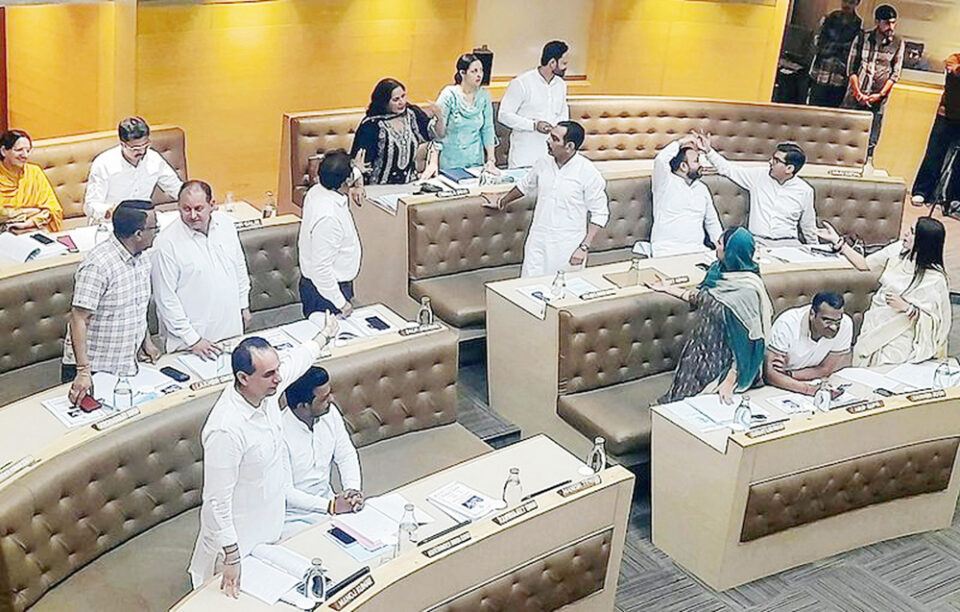 चंडीगढ़ : चंडीगढ़ नगर निगम की आयोजित बैठक में कांग्रेस-आप गठबंधन और भाजपा पार्षदों के बीच जम कर हंगामा हुआ। एक मुद्दे पर तो मामला गाली-गलौज तक पहुंच गया। हंगामे के बाद कांग्रेस आप गठबंधन के पार्षदों ने हाउस के बाहर धरना दे दिया। बैठक में नगर निगम में सबसे बड़ा हंगामा नगर निगम द्वारा वी-3 रोड को प्रशासन के इंजीनियरिंग विंग को हस्तांतरण को लेकर देखने में आया। आम आदमी पार्टी के पार्षद सदन में जोर-जोर से इसके खिलाफ नारेबाजी करते रहे, जिन्हें मेयर के आदेश पर मार्शलों ने बाहर निकाला। कांग्रेस के पार्षद नारेबाजी करते हुए सदन सह बाहर चले गये, वहीं पर धरना भी देते रहे। लेकिन मेयर इस प्रस्ताव को पारित कराने में कामयाब रहीं।