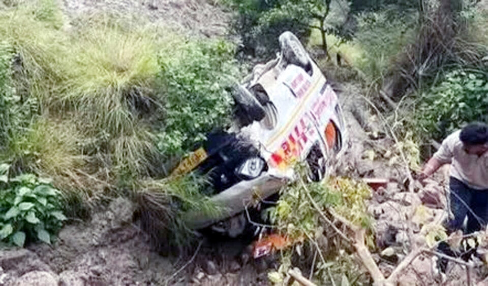होशियारपुर : पंजाब के होशियारपुर-चिंतपूर्णी हाईवे पर शनिवार को बड़ा सड़क हादसा हो गया. दरअसल, कांगड़ा से धर्मशाला जा रही एक एंबुलेंस मगोवाल गांव के पास गहरी खाई में गिर गई. पंजाब के होशियारपुर-चिंतपूर्णी हाईवे पर मगोवाल के पास हुए इस एक्सीडेंट में तीन लोगों की मौत और दो घायल हुए हैं. खाई से घायलों और शवों को बाहर निकालने के लिए कड़ी मशक्कत करनी पड़ी. पुलिस के द्वारा घायलों को तुरंत नजदीकी अस्पताल ले जाया गया, जहां उनका इलाज जारी है. उनकी हालत गंभीर बनी हुई है. मृतकों की पहचान की प्रक्रिया जारी है.हादसे के बाद इलाके में अफरा-तफरी मच गई. पुलिस अधिकारियों ने बताया कि दुर्घटना के सही कारणों की जांच की जा रही है. फिलहाल प्राथमिक आशंका है कि वाहन चालक का संतुलन बिगड़ने से यह हादसा हुआ. स्थानीय प्रशासन ने मृतकों के परिजनों को हर संभव मदद का आश्वासन दिया है.पुलिस के अनुसार एंबुलेंस कांगड़ा से मरीजों को लेकर धर्मशाला जा रही थी. मगोवाल गांव के समीप अचानक वाहन चालक का नियंत्रण बिगड़ गया और एंबुलेंस सीधे खाई में जा गिरी. हादसे के तुरंत बाद स्थानीय लोग और पुलिस मौके पर पहुंचे और राहत-बचाव कार्य शुरू किया. इस सड़क दुर्घटना ने पूरे क्षेत्र को हिला दिया है. ग्रामीणों ने प्रशासन से मांग की है कि इस हाईवे पर सुरक्षा इंतजाम बढ़ाए जाएं और खाई किनारे बैरिकेड्स लगाए जाएं ताकि भविष्य में ऐसी घटनाओं को रोका जा सके. पुलिस ने मामला दर्ज कर लिया है और विस्तृत जांच शुरू कर दी है. दुर्घटनाग्रस्त एंबुलेंस को खाई से निकालने के लिए क्रेन बुलाई गई. मृतकों के शव पोस्टमार्टम के लिए भेजे गए हैं. हादसे के बाद से होशियारपुर-चिंतपूर्णी मार्ग पर कुछ समय तक यातायात बाधित रहा, जिसे बाद में बहाल कर दिया गया.
