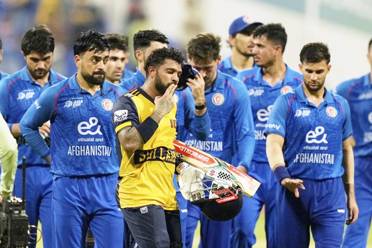 श्रीलंका : अफगानिस्तान और श्रीलंका नुवान तुषारा की तूफानी गेंदबाजी के बाद सलामी बल्लेबाज कुसाल मेंडिस के नाबाद अर्धशतक से श्रीलंका ने एशिया कप टी20 क्रिकेट टूर्नामेंट के ग्रुप बी मैच में बृहस्पतिवार को यहां अफगानिस्तान को छह विकेट से हराकर सुपर चार के लिए क्वालीफाई किया। अफगानिस्तान की टीम तीन मैच में एक जीत से दो अंक ही जुटा सकी और प्रतियोगिता से बाहर हो गई। श्रीलंका की टीम अपने तीनों मैच जीतकर छह अंक के साथ शीर्ष पर रही जबकि बांग्लादेश तीन मैच में चार अंक के साथ ग्रुप से सुपर चार में जगह बनाने वाली दूसरी टीम रही। अफगानिस्तान के 170 रन के लक्ष्य का पीछा करते हुए श्रीलंका ने मेंडिस (नाबाद 74 रन, 52 गेंद, 10 चौके) की धैर्यपूर्ण पारी की बदौलत 18.4 ओवर में चार विकेट पर 171 रन बनाकर जीत दर्ज की।